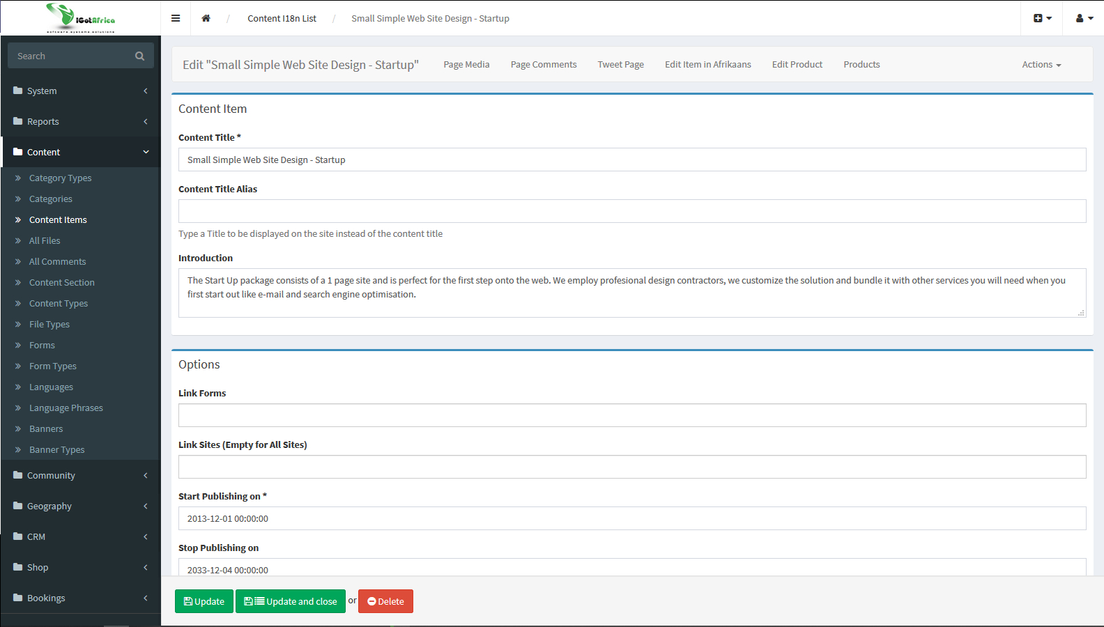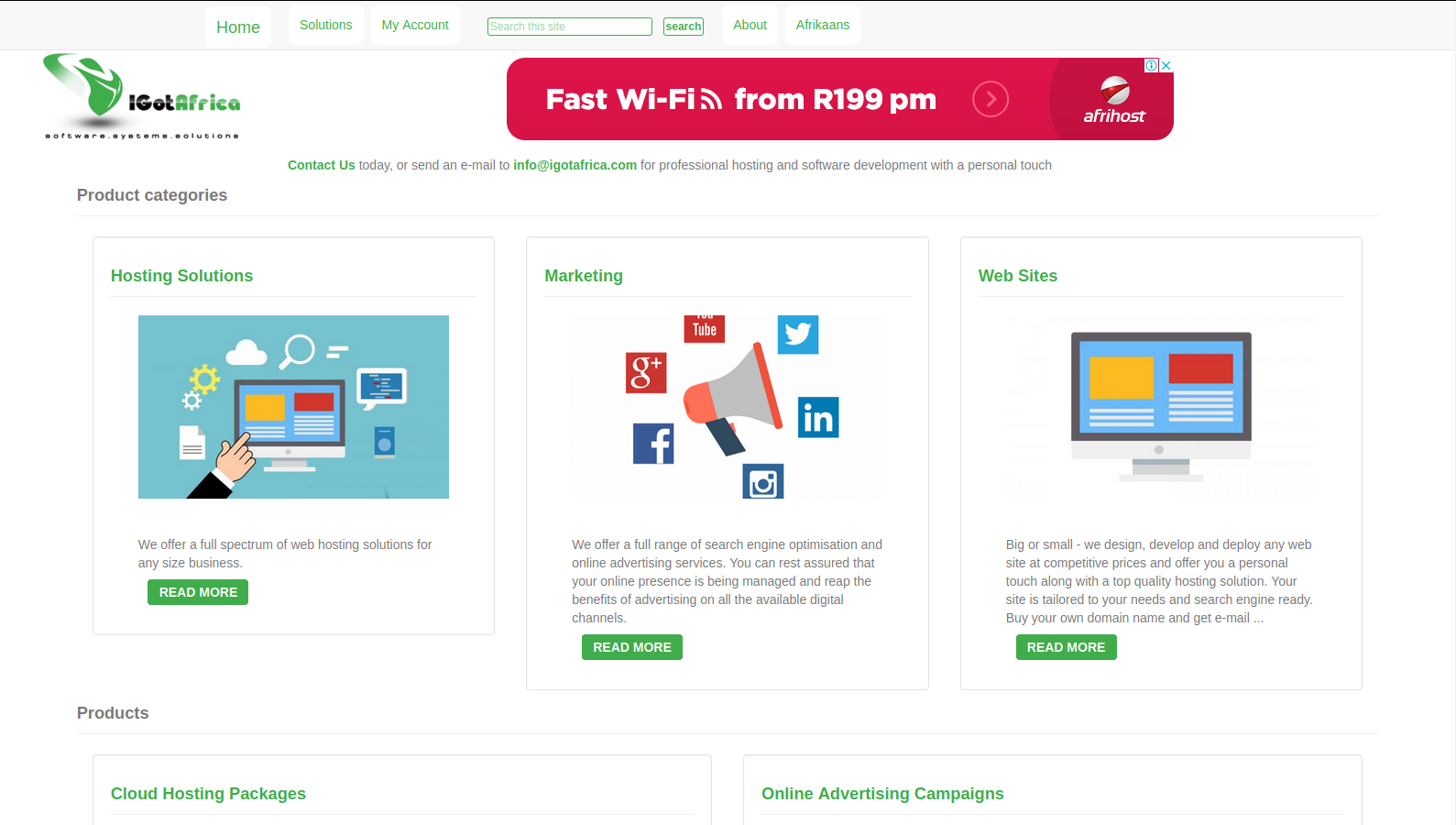 Within a matter of days your site can be ready to launch. Contact us right now, or send a message to us@igotafrica.com. We can help you from start to finish: